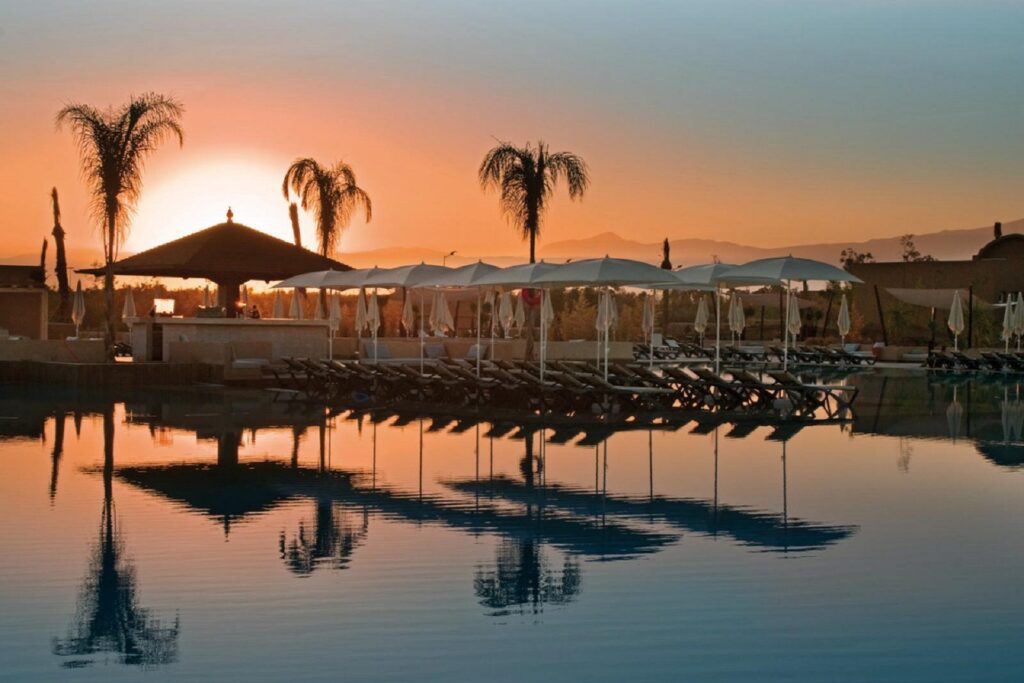 Übernachten Sie in diesem fantastischen 4-Sterne-Hotel und spielen Sie auf den nächstgelegenen Plätzen (Golf Club Rotana Palmeraie, Amelkis Golf Club, Royal Golf Club Marrakech und Al Maaden Golf Club) das beste Golf in Marokko. Die Abschlagzeiten sind bereits für Sie reserviert.