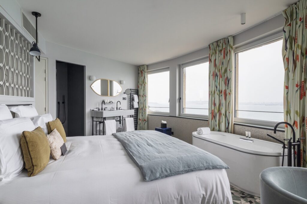 01.11.–06.11. — 5 Übernachtungen, Superior room, sea view (kingbed), NUR ZIMMER Bei einem Aufenthalt im Castelbrac Hôtel & Spa in Dinard wohnen Sie direkt am Meer, nur 5 Gehminuten von Promenade du Clair de Lune und Plage de l’Écluse entfernt. Dieses 5-Sterne-Hotel ist 7,3 Meilen (11,7 km) vom Fährhafen Saint-Malo und 7,5 Meilen (12 km) vom Strand St. Malo entfernt. Entspannen Sie sich im Spa mit vollem Serviceangebot, wo Sie Massagen, Körperbehandlungen und Gesichtsbehandlungen genießen können. Sie werden die Freizeiteinrichtungen zu schätzen wissen, darunter ein Außenpool, ein Dampfbad und ein 24-Stunden-Fitnesscenter. Zu den weiteren Annehmlichkeiten in diesem Hotel gehören kostenloser drahtloser Internetzugang, Concierge-Service und Babysitting (gegen Aufpreis). Gäste können mit dem Shuttle (gegen Aufpreis) zu nahe gelegenen Zielen fahren. Fühlen Sie sich in einem der 25 individuell eingerichteten Gästezimmer mit iPod-Dockingstation und Minibar wie zu Hause. Ihr Bett ist mit Daunendecken und Premium-Bettwäsche ausgestattet. LED-Fernseher mit Kabelprogramm sorgen für Unterhaltung, und der kostenlose drahtlose Internetzugang hält Sie auf dem Laufenden. Die privaten Badezimmer mit Badewanne oder Dusche sind mit kostenlosen Toilettenartikeln und Haartrocknern ausgestattet.