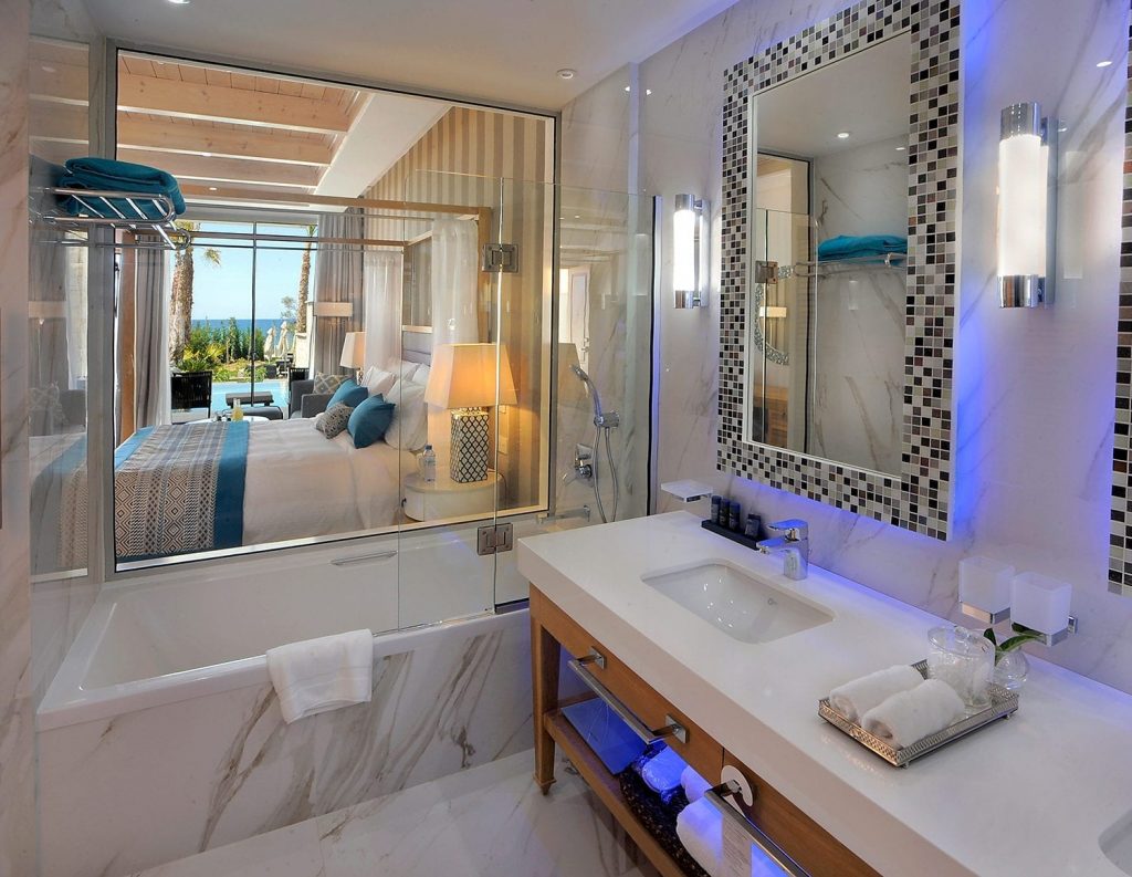 19.02.–26.02. — 7 Übernachtungen, Double or twin deluxe sea view, ÜBERNACHTUNG MIT FRÜHSTÜCK Amavi, MadeForTwo Hotels – Paphos in Paphos liegt am Strand, eine 2-minütige Fahrt von Hafen von Paphos und 7 Minuten Fahrt von Königsgräber entfernt. Dieses Hotel mit 5 Sternen ist 14,1 km von Strand in der Korallenbucht und 23,6 km von Aphrodite Hills Golf (Golfanlage) entfernt. Gönnen Sie sich einen Besuch des Wellnessbereichs, der Massagen, Körperbehandlungen und Gesichtsbehandlungen bietet. Sicher werden Sie die Freizeiteinrichtungen zu schätzen wissen, zu denen Folgendes gehört: 2 Außenpools, Tennisplatz im Freien und Sauna. Dieses Hotel bietet auch kostenloses WLAN, ein Concierge-Service und ein Souvenirladen/Kiosk. Fühlen Sie sich in einem der 155 klimatisierten Zimmer mit Espressomaschine und Flachbildfernseher wie zu Hause. Die Zimmer haben eigene möblierte Balkone. Ein WLAN-Internetzugang (kostenlos) ist ebenso verfügbar wie Satellitenempfang. Es sind eigene Badezimmer mit Duschwannen vorhanden, die Komfortbadewannen und Regenduschen bieten.