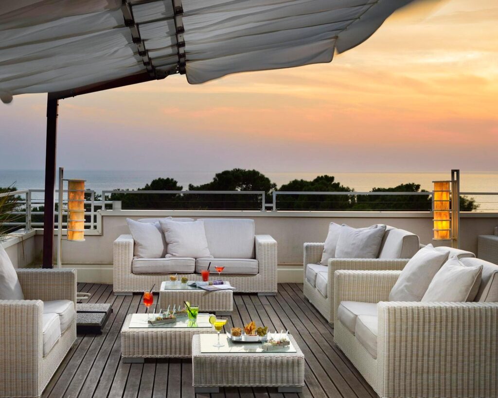 22.12.–29.12. — 7 Übernachtungen, Dbl superior, ÜBERNACHTUNG MIT FRÜHSTÜCK Dieses Hotel bietet alle Zutaten für einen tollen Urlaub: das Meer gleich gegenüber, große, modern eingerichtete Zimmer und einen außergewöhnlichen Golfplatz in der Nähe. Die helle Halle mit weißem Parkett und hellem Steinboden, die gemütlichen Sessel und der schöne Blick auf den Innenhof, vermitteln ein entspannendes Gefühl von Wohlbefinden und Ruhe. Die Zimmer und Appartements, alle großzügig geschnitten und mit Parkettboden, großen Fenstern, Balkon, Flachbildfernseher und Klimaanlage ausgestattet, spiegeln das gleiche Konzept von Modernität und Komfort wider. Der cremeweiße Farbton, hier und da mit einer Kontrastfarbe kombiniert, erzeugt eine elegante, auffällige Wirkung. Die Apartments sind mit einer modernen Küche, einem Esstisch und einem Balkon ausgestattet. Von der Dachterrassen-Bar aus haben Sie einen fantastischen Blick auf das Tyrrhenische Meer und die ganze Region der Versilia. Im Sommer können Sie köstliche gegrillte Fisch- und Meeresfrüchtegerichte probieren. Zwei Tennisplätze und ein Restaurant runden das Bild dieses schönen Hotels ab.