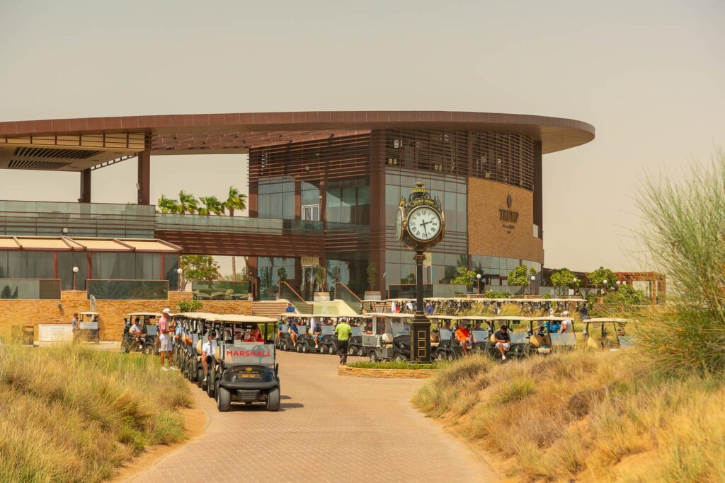 Der Trump International Golf Club Dubai ist ein 18-Loch-Golfplatz im Links-Stil, der sich auf einer Fläche von 200 Hektar befindet und auf einer ehemals flachen, ungenutzten Wüste errichtet wurde. Dank seines weitläufigen Multi-Tee-Systems bietet er ein einzigartiges Erlebnis für Golfer aller Spielstärken. Hanse Golf Course Design, geleitet von Golfarchitekt Gil Hanse und seinem Partner Jim Wagner, sorgte für Höhenunterschiede, tiefe Ausblicke und viele spannende Golfschläge. Die Fairways sind breit und enthalten beeindruckende Wasserhindernisse und Sandflächen, die ein strategisches Spiel vom Abschlag und bei Annäherungsschlägen fördern. Die komplexen Greens sind groß, aber mit Unebenheiten, die den Ball manchmal in die falsche Richtung lenken. Abgerundet wird das Angebot des Trump International Golf Club Dubai durch einen von Gil Hanse entworfenen 9-Loch-PAR-3-Platz mit Flutlicht, auf dem man den ganzen Tag und bis tief in die Nacht hinein Golf spielen kann. Ein Clubhaus mit Restaurant, Pro-Shop und eine moderne Golf-Akademie ergänzen den Service für den Golfer.