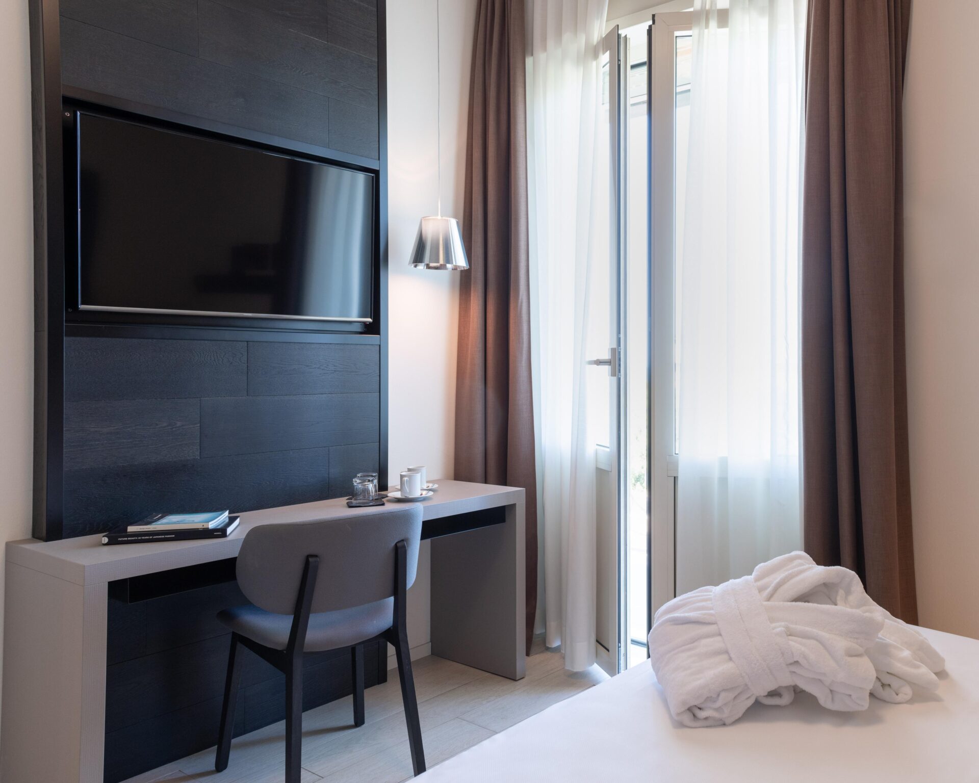 The MarePineta Resort – a timeless classic. Surrounded by a centuries-old pine wood and just a few steps from its own private beach, the MarePineta Resort was built in the 1920s as an icon of style and elegance in Milano Marittima and became the crown jewel of the Riviera Romagnola. The rooms are located in three different areas of the resort: in the historic 1927 building, in the futuristic Lissoni cube and in the area between the completely renovated historic Casa Madre building and the glass building in the park, called Villa Regina.