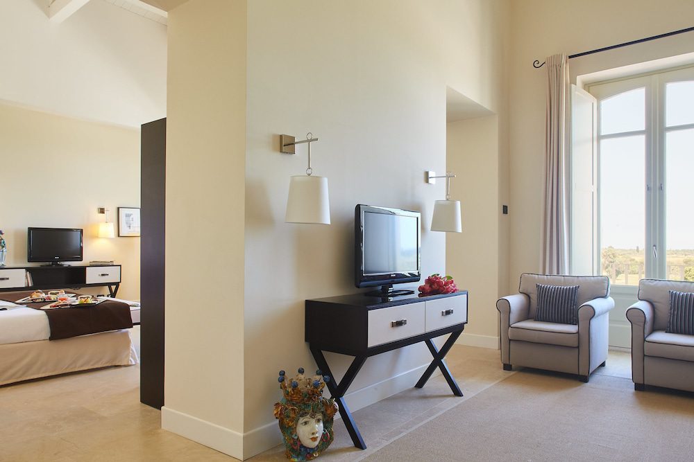 Das Resort verfügt über elegant eingerichtete Zimmer und Suiten, die den Charme der ursprünglichen Architektur bewahren und gleichzeitig allen modernen Komfort bieten.